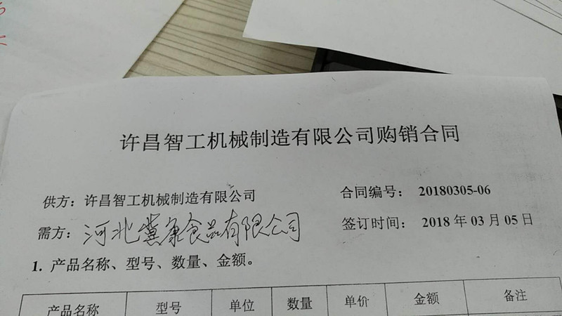 2018年3月5號(hào)元宵節(jié)剛剛過去,也是中小學(xué)生開學(xué)的日子。石家莊的紀(jì)總帶著兩個(gè)師傅來到驅(qū)車600公里親臨我廠考察炒芝麻設(shè)備。與紀(jì)總結(jié)緣是在17年成都春季糖酒會(huì)上。當(dāng)時(shí)的紀(jì)總許昌智工的電磁炒鍋賦予高度評(píng)價(jià),經(jīng)過一年的考慮,加上現(xiàn)在國家對(duì)環(huán)保的重視。讓紀(jì)總不得不淘汰更換以前的舊鍋。所以在元宵節(jié)剛剛過去就直接到廠考察設(shè)備。由于來的匆忙,紀(jì)總沒有帶試機(jī)的物料。本來計(jì)劃去市場買幾百斤芝麻現(xiàn)場給紀(jì)總試炒一下,紀(jì)總參觀完工廠看過設(shè)備之后,問了幾個(gè)關(guān)于炒貨機(jī)使用過程中會(huì)出現(xiàn)的問題,以及售后問題后,決定不用試機(jī)。并當(dāng)場簽訂合同。 |