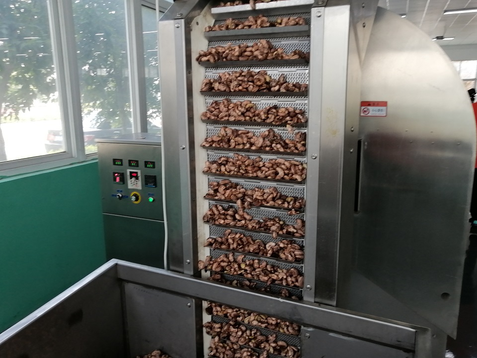2020年7月3日,河北省石家莊市客戶帶新鮮腰果來許昌智工機械有限公司試機8米流水線炒制腰果。經過試機炒制出的腰果色澤口感俱佳,飄香四風,風味獨特?蛻舯硎臼譂M意。 許昌智工機械制造有限公司是中國發(fā)明家協會和河南省堅果炒貨協會的會員企業(yè),是一家擁有獨立研發(fā)能力的高新技術民營企業(yè)。公司先后研發(fā)生產的電磁炒貨機、瓜子脫皮烘炒機、流水線電磁炒貨設備等產品,特別是研發(fā)的DCCZ系列低損耗、零碳排放的電磁炒貨機,被國家環(huán)保部門選入為環(huán)保型設備。 許昌智工電磁炒貨設備全部采用優(yōu)質304不銹鋼材料打造,符合環(huán)境及衛(wèi)生生產標準,炒鍋溫度最高可設置400度,產品具備自動化程度高、智能控溫、低損耗、無污染、省人工等特點,產品自投放市場以來,暢銷海內外,并獲得客戶的一致認可和高度評價!該設備可根據用戶需要炒制產品需求,提供定制服務,滿足用戶炒貨需求,為用戶提供一體化流水線電磁炒貨設備個性化設計方案。
